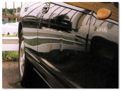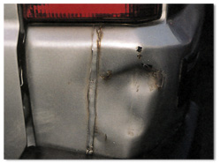 W3. Плохо отремонтировано. Востановленый участок виден хорошо. (There is a wave in a panal where it has been repaired, and is visible.)