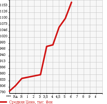 Таблица чрезвычайно полезна при наличии нескольких модификаций на одном типе кузова. Если по конкретной модификации продано достаточное количество авто (обычно более 5) то по расчетные данные могут быть наиболее достоверными. Сводный график среза цен показывает общую ценовую тенденцию за последние пол года. По наклону графика динамики цен (изменения приведенной средней цены) на последнем отрезке можно прогнозировать в какую сторону (увеличение или уменьшение) идет общая тенденция цен.