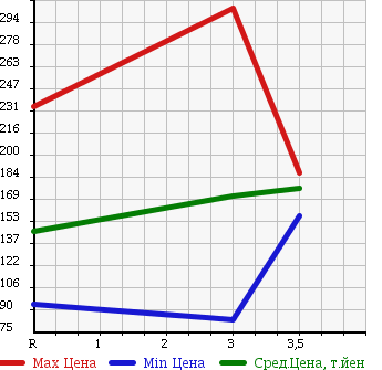 Таблица дана для самой общей оценки уровней цен на рынке. Для более точной оценки используйте таблицы расчетов по типу кузова или модификаций. Расчет "Средней цены 10% самых дешевых" и других дополнительных данных производится при наличии количества статистических данных лотов более 30