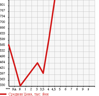Таблица дана для самой общей оценки уровней цен на рынке. Для более точной оценки используйте таблицы расчетов по типу кузова или модификаций. Расчет "Средней цены 10% самых дешевых" и других дополнительных данных производится при наличии количества статистических данных лотов более 30