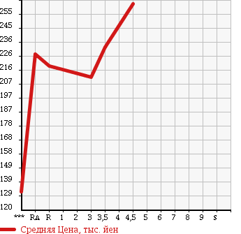 Таблица дана для самой общей оценки уровней цен на рынке. Для более точной оценки используйте таблицы расчетов по типу кузова или модификаций. Расчет "Средней цены 10% самых дешевых" и других дополнительных данных производится при наличии количества статистических данных лотов более 30
