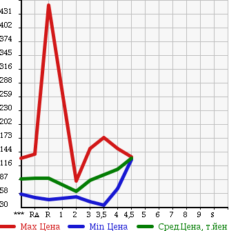 Таблица дана для самой общей оценки уровней цен на рынке. Для более точной оценки используйте таблицы расчетов по типу кузова или модификаций. Расчет "Средней цены 10% самых дешевых" и других дополнительных данных производится при наличии количества статистических данных лотов более 30