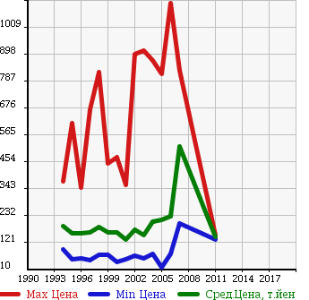 Выберите год выпуска автомобиля: Вашему вниманию предоставлен список проданных моделей выбранной марки сгруппированный по годам регистрации. По количеству проданных моделей конкретного года можно косвенно оценить вероятность покупки автомобиля именно этого года выпуска. График позволяет визуально определить общую ценовую тенденцию и оценить вероятный разброс цен. Для уменьшения влияния сезонного колебания цен и повышения достоверности расчет сводных данных по статистике производится по проданным за последние 6 месяцев автомобилям. При этом не берутся в расчет автомобили "проданные по договоренности" и "ONE PRICE" Пользователи могут искать данную информацию в нашей системе по поисковым ключам (цены на MITSUBISHI Мицубиси DELICA SPACE GEAR Делика Спэйс Гир ).
