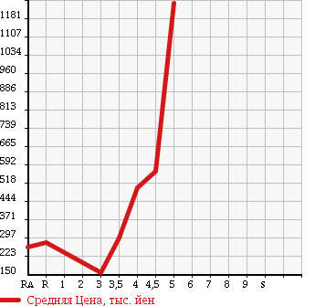 Таблица дана для самой общей оценки уровней цен на рынке. Для более точной оценки используйте таблицы расчетов по типу кузова или модификаций. Расчет "Средней цены 10% самых дешевых" и других дополнительных данных производится при наличии количества статистических данных лотов более 30