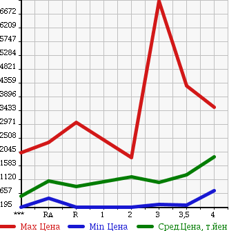 Таблица дана для самой общей оценки уровней цен на рынке. Для более точной оценки используйте таблицы расчетов по типу кузова или модификаций. Расчет "Средней цены 10% самых дешевых" и других дополнительных данных производится при наличии количества статистических данных лотов более 30