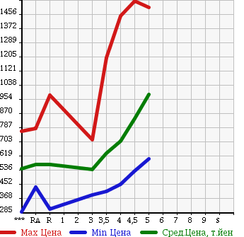 Таблица дана для самой общей оценки уровней цен на рынке. Для более точной оценки используйте таблицы расчетов по типу кузова или модификаций. Расчет "Средней цены 10% самых дешевых" и других дополнительных данных производится при наличии количества статистических данных лотов более 30