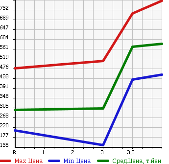 Таблица дана для самой общей оценки уровней цен на рынке. Для более точной оценки используйте таблицы расчетов по типу кузова или модификаций. Расчет "Средней цены 10% самых дешевых" и других дополнительных данных производится при наличии количества статистических данных лотов более 30