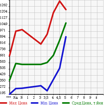 Таблица дана для самой общей оценки уровней цен на рынке. Для более точной оценки используйте таблицы расчетов по типу кузова или модификаций. Расчет "Средней цены 10% самых дешевых" и других дополнительных данных производится при наличии количества статистических данных лотов более 30