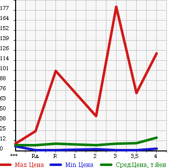 Таблица дана для самой общей оценки уровней цен на рынке. Для более точной оценки используйте таблицы расчетов по типу кузова или модификаций. Расчет "Средней цены 10% самых дешевых" и других дополнительных данных производится при наличии количества статистических данных лотов более 30