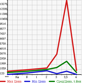 Таблица дана для самой общей оценки уровней цен на рынке. Для более точной оценки используйте таблицы расчетов по типу кузова или модификаций. Расчет "Средней цены 10% самых дешевых" и других дополнительных данных производится при наличии количества статистических данных лотов более 30