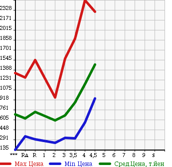 Таблица дана для самой общей оценки уровней цен на рынке. Для более точной оценки используйте таблицы расчетов по типу кузова или модификаций. Расчет "Средней цены 10% самых дешевых" и других дополнительных данных производится при наличии количества статистических данных лотов более 30