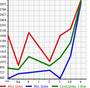 Таблица дана для самой общей оценки уровней цен на рынке. Для более точной оценки используйте таблицы расчетов по типу кузова или модификаций. Расчет "Средней цены 10% самых дешевых" и других дополнительных данных производится при наличии количества статистических данных лотов более 30