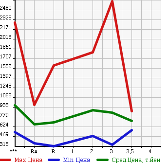 Таблица дана для самой общей оценки уровней цен на рынке. Для более точной оценки используйте таблицы расчетов по типу кузова или модификаций. Расчет "Средней цены 10% самых дешевых" и других дополнительных данных производится при наличии количества статистических данных лотов более 30