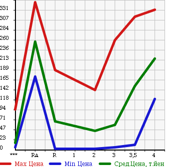 Таблица дана для самой общей оценки уровней цен на рынке. Для более точной оценки используйте таблицы расчетов по типу кузова или модификаций. Расчет "Средней цены 10% самых дешевых" и других дополнительных данных производится при наличии количества статистических данных лотов более 30