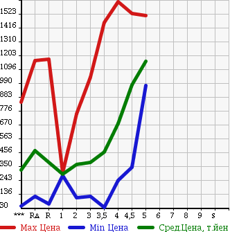 Таблица дана для самой общей оценки уровней цен на рынке. Для более точной оценки используйте таблицы расчетов по типу кузова или модификаций. Расчет "Средней цены 10% самых дешевых" и других дополнительных данных производится при наличии количества статистических данных лотов более 30