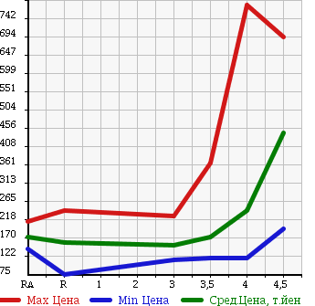 Таблица дана для самой общей оценки уровней цен на рынке. Для более точной оценки используйте таблицы расчетов по типу кузова или модификаций. Расчет "Средней цены 10% самых дешевых" и других дополнительных данных производится при наличии количества статистических данных лотов более 30